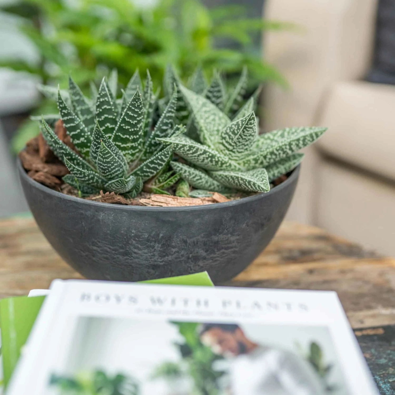 Kombinieren Sie diese größere Blumenschale mit anderen kleineren Schale oder Blumentöpfen in verschiedenen Farben.